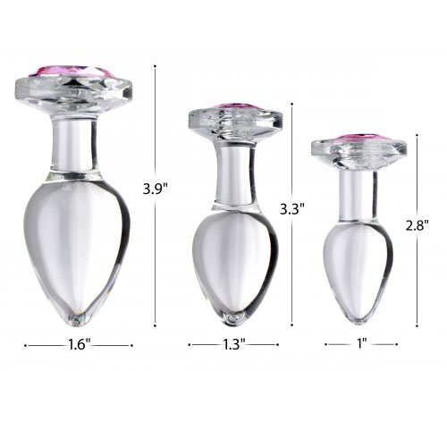 Adorn your derriere with this set of dazzling pink gems! These glassy Booty Sparks anal plugs are crystal clear and super smooth to provide a solid texture just for your backdoor. Perfect for warming up your hole for further pleasure, or as a standalone anal toy – the rigid body and super smooth surface presses firmly against your walls for an incredibly satisfying squeeze!