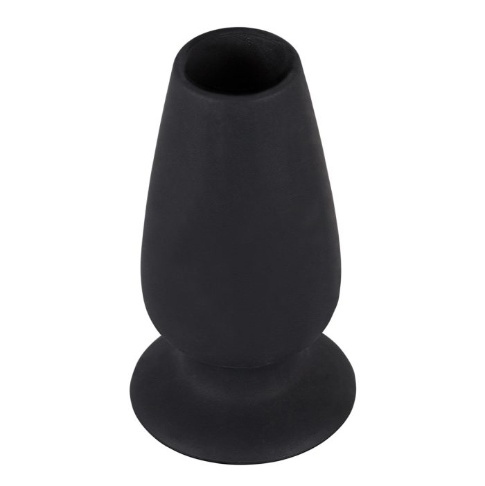 This anal plug is open the whole way on both sides. After inserting it anally. It can be filled with various things, such as vibrators and lube. Complete length. approx. 10 cm, penetration depth 8.5 cm. Outer dia 3 to 5 cm, inner dia 2.5 cm.