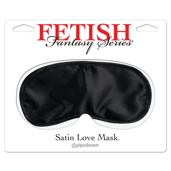 Comfy satin black mask that stays in place with an elastic fabric strap.