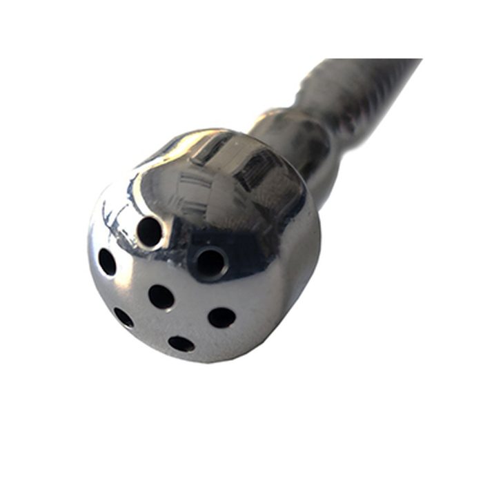 With the Penis Plug Shower Head, the user is provided with a 5mm graduating to 8mm plug and shower style head allowing fluid to pass through whilst being worn. 3 inches insertable.