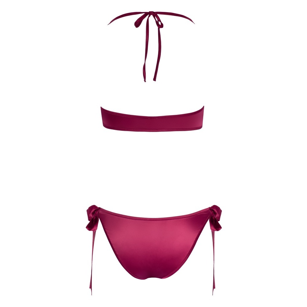 The wireless bra and briefs from Cottelli Lingerie are made out of velvety soft, stretchy material. The bra has a halterneck that ties in a bow between the cups that can be untied.