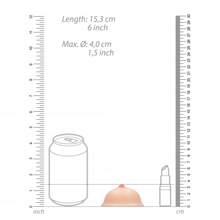 The S-Line Titty Soap has a diameter of 7.3cm, 2.9 inches, and a height of 4.4cm, 1.7 inches including the lifelike nipple.